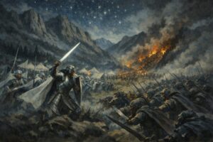 Throughout the night, fire struggles. Torches sputter. Arrows dipped in flame fail to burn. Nature itself seems hostile to light and warmth. The defenders cannot rely on fire as a weapon or a comfort.