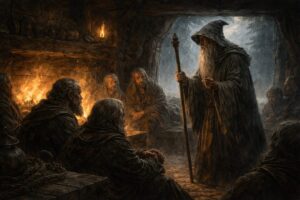 His language is the language of persuasion, superiority, and recruitment. He speaks as though Gandalf ought to understand that resistance is futile and that wisdom now lies in joining him. Saruman imagines a partnership in which they bide their time, study events, and ultimately profit from Sauron’s rise by taking power for themselves. When Gandalf refuses, Saruman imprisons him on the pinnacle of Orthanc.